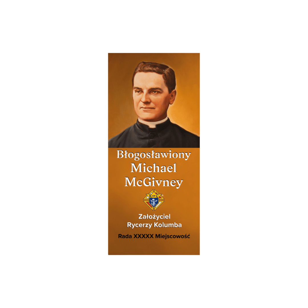 Oficjalny roll up z wizerunkiem bł. ks. McGivney’a. Roll up o wymiarach 85 x 200, z praktycznym i trwałym mechanizmem wykonany na trwałej podstawie.
